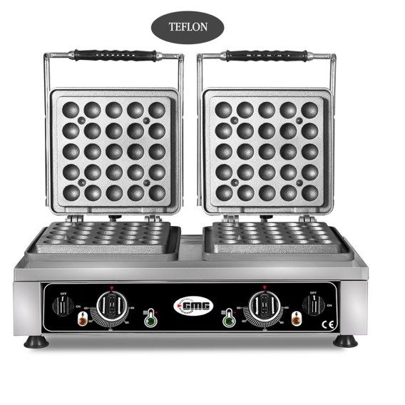 GMG - Gofrownica Lokmia-D - 2x (Ø 25 x 3,5cm x 1,7cm / 3,4cm) - 50° do 300°C - Płyty żeliwne - Rynienka ociekowa