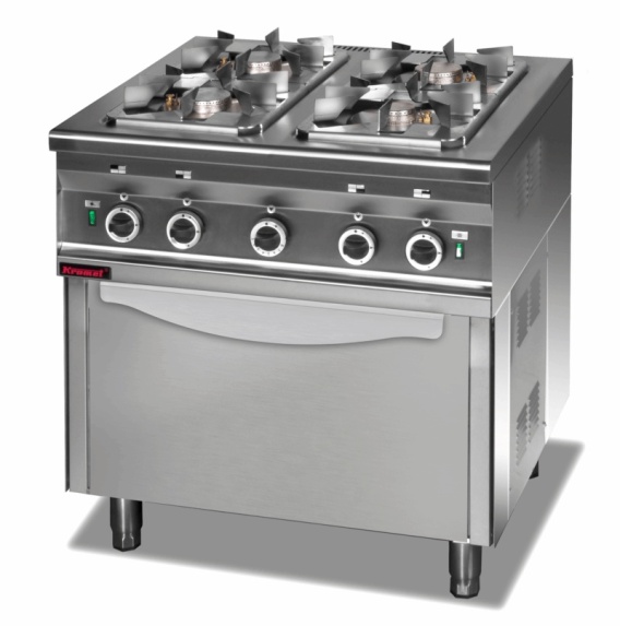 Kuchnia gazowa 3x 3,5 kW +1x 2,5 kW na podstawie szafkowej otwartej LINIA COMPACT 700 KROMET 000.KG-4s.S