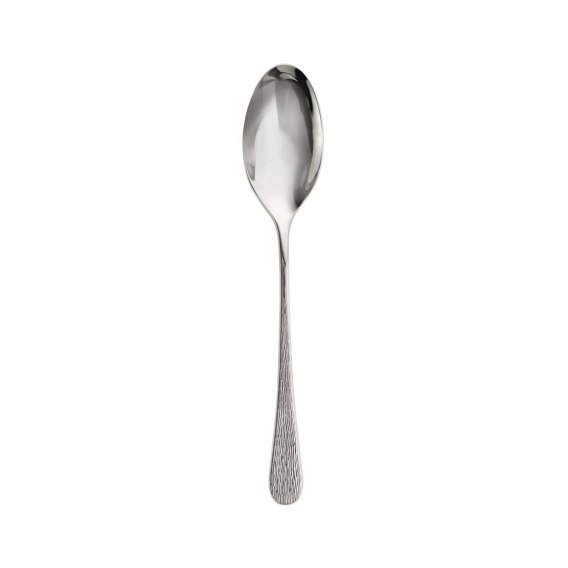 Sztućce Skye mają smukły i elegancki profil o klasycznych proporcjach i teksturowanym wykończeniu inspirowanym techniką złotniczą polegającą na struganiu długim młotkiem. Wykonane są z najlepszej stali nierdzewnej 18/10 z lustrzanym połyskiem.