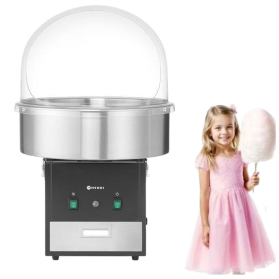 Model Hendi 282816K to kompletna maszyna do waty cukrowej przeznaczona do użytku gastronomicznego, wyposażona w kopułę ochronną, która zabezpiecza produkt przed wiatrem i zanieczyszczeniami. Sprawdzi się podczas imprez plenerowych, festynów, eventów firmowych oraz w punktach gastronomii mobilnej.