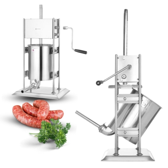 Profesjonalna nadziewarka do kiełbas Hendi 282151 z serii Profi Line o pojemności 10 litrów to idealne rozwiązanie dla zakładów mięsnych, gastronomii oraz entuzjastów domowej produkcji wędlin. Wykonana z wysokiej jakości stali nierdzewnej, zapewnia trwałość, higienę i estetyczny wygląd, spełniając oczekiwania nawet najbardziej wymagających użytkowników.