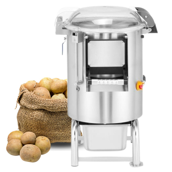 Mocny silnik zapewnia obranie porcji ziemniaków w cyklu trwającym zaledwie 2-3 minuty. Panel sterowania wyposażony jest w 8-minutowy timer i lampki kontrolne. Obieraczka jest bardzo bezpieczna w obsłudze dzięki mikroprzełącznikowi, który wyłącza urządzenie po otwarciu pokrywy. Wyposażona w przyłącze do świeżej wody i odpływu, umożliwia płukanie ziemniaków podczas obierania. Separator do zbierania skórek (zbiornik z perforowanym wkładem) skutecznie zmniejsza ryzyko zapchania kanalizacji.