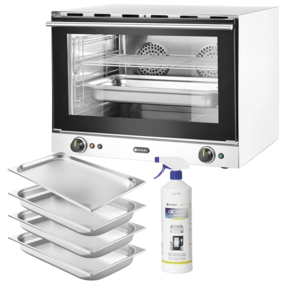 Piec konwekcyjny z nawilżaniem 3,5 kW 230V 4xGN 1/1 Zestaw M z pojemnikami, rusztem i płynem do czyszczenia 699x608x580 mm