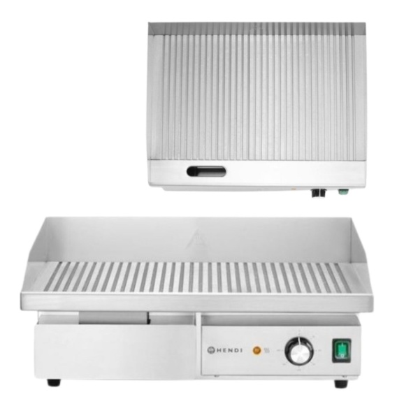 Płyta grillowa Hendi 154984 z ryflowaną powierzchnią na 230V. Moc 3000W i stalowa płyta hartowana do grillowania mięsa, burgerów i warzyw.