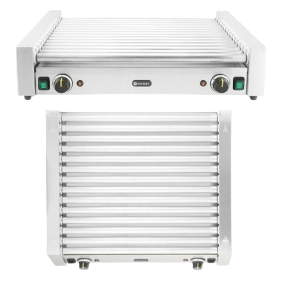 Podgrzewacz rolkowy do parówek XL dwustrefowy 14 rolek srebrny 2000W Hendi 268674