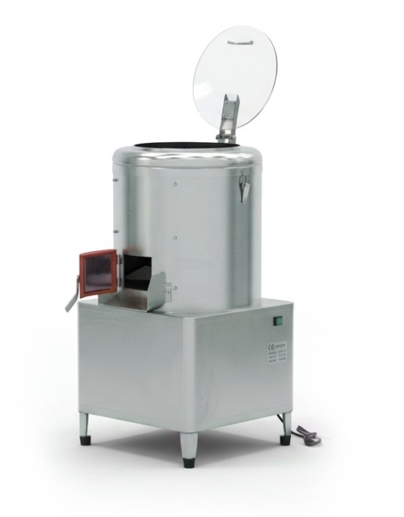 Model X30C1 został wykonany ze stali nierdzewnej AISI 201 o grubości 1 mm, co zapewnia trwałość i odporność na intensywną eksploatację. Wnętrze urządzenia – dno i ścianki – pokryto materiałem ścierającym, który skutecznie usuwa skórki i gwarantuje równomierne obieranie. Urządzenie wyposażono w klapę z uchwytem z pleksi, otwór wylotowy ułatwiający opróżnianie oraz odpływ wody, co pozwala zachować wysoki standard higieny. Obsługa ogranicza się do prostego przycisku włącz/wyłącz, a montaż wymaga jedynie podłączenia do instalacji elektrycznej, wody i odpływu.