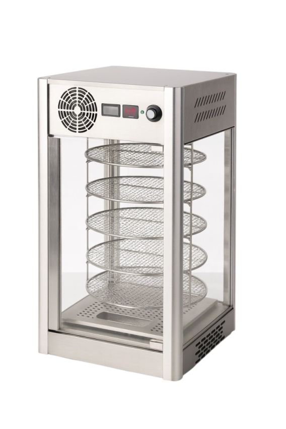 Urządzenie wykonane z wysokogatunkowej stali nierdzewnej zapewnia trwałość, odporność na zabrudzenia i łatwość czyszczenia. Cztery poziomy ekspozycyjne umożliwiają efektowną prezentację wielu produktów jednocześnie. Witryna wyposażona jest w system nawilżania powietrza, który zapobiega wysychaniu potraw, dzięki czemu zachowują one świeżość i apetyczny wygląd. Precyzyjna regulacja temperatury w zakresie 30–85°C z cyfrowym wyświetlaczem pozwala dopasować warunki do rodzaju potraw, a wbudowane oświetlenie podkreśla ich atrakcyjność.