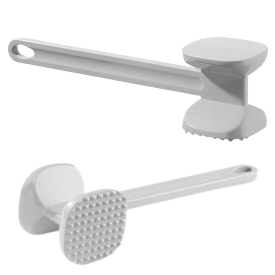 Dwustronny: wypukła strona do rozbijania i zmiękczania, płaska strona do ubijania.