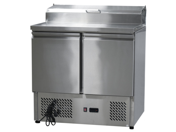 2-drzwiowy stół chłodniczy ESL z agregatem na dole wykonany ze stali nierdzewnej przystosowany do pojemników gastronomicznych GN1/1. Urządzenie doskonale nadaje się do różnego rodzaju punktów gastronomicznych tj. restauracje, pizzerie, bary, fast-food'y, puby itp.