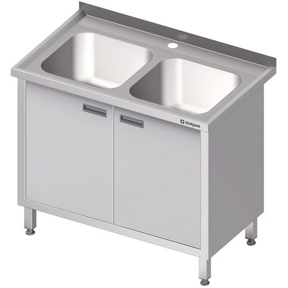 Stół Nierdzewny Gastronomiczny Z 2 Zlewami Drzwi Skrzydłowe 100x70 Stalgast