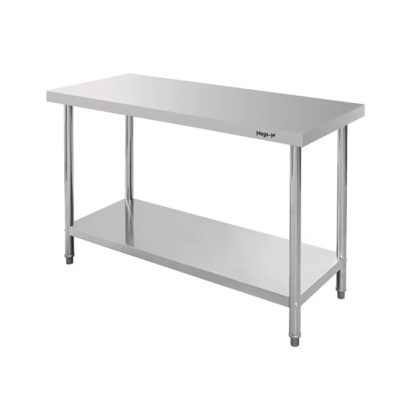 Stół gastronomiczny STANDARD 120x70x85 cm to niezastąpiony element wyposażenia profesjonalnej kuchni. Dzięki precyzyjnemu wykonaniu i wysokiej jakości materiałom jest idealnym rozwiązaniem dla restauracji, hoteli, cateringu i innych miejsc, gdzie liczy się trwałość i higiena. Centralna konstrukcja bez rantu umożliwia swobodny dostęp z każdej strony, co czyni ten stół wyjątkowo praktycznym w codziennym użytkowaniu. Stół gastronomiczny STANDARD został wyposażony w dolną półkę, która stanowi cenną w każdej kuchni dodatkową powierzchnię przechowywania oraz regulowane nóżki, za pomocą których można zniwelować nierówności podłoża. Dzięki swojej gładkiej powierzchni mebel jest łatwy do utrzymania w czystości.