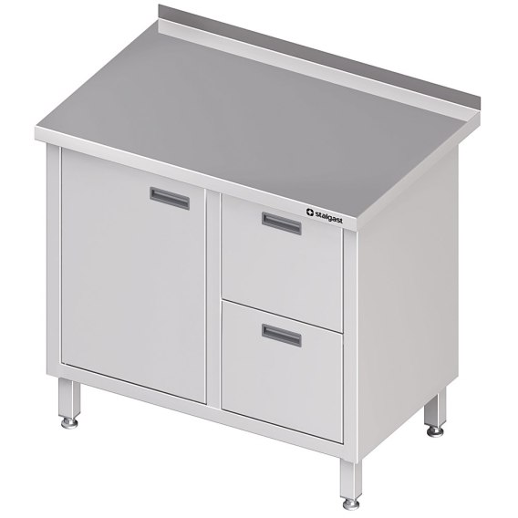 Stół przyścienny z blokiem dwóch szuflad (P) drzwi skrzydłowe 900x600x850 mm Stalgast 980316090