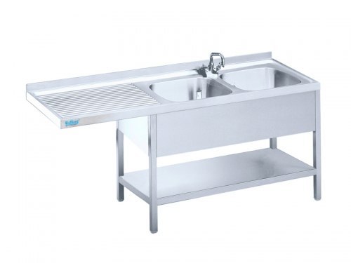 Stół ze zlewem 2 -komorowym z wydłużonym ociekaczem