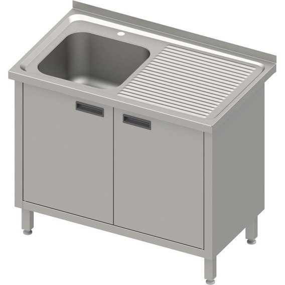 Stół ze zlewem 1-kom. (L) drzwi skrzydłowe 800x600x850 mm blat tłoczony Stalgast 983876080