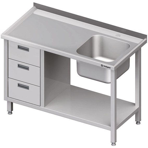 Stół ze zlewem 1-kom. (P) z blokiem trzech szuflad i półką 1800x600x850 mm Stalgast 982366180