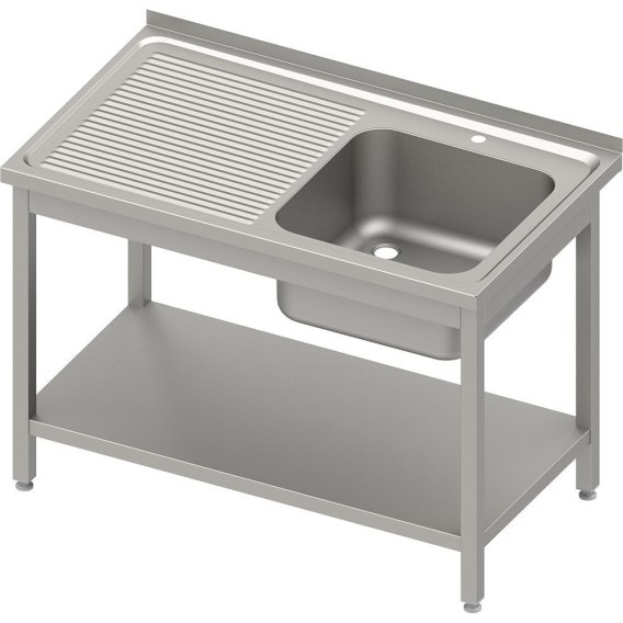 Stół ze zlewem 1-kom. (P) z półką 1400x600x850 mm skręcany blat tłoczony Stalgast 983146140