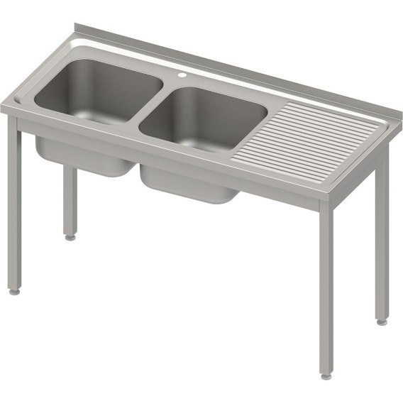 Stół ze zlewem 2-kom. (L) bez półki 1400x700x850 mm skręcany blat tłoczony Stalgast 983937140