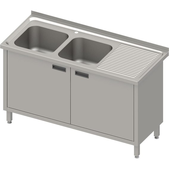 Stół ze zlewem 2-kom. (L) drzwi skrzydłowe 1400x700x850 mm blat tłoczony Stalgast 983987140