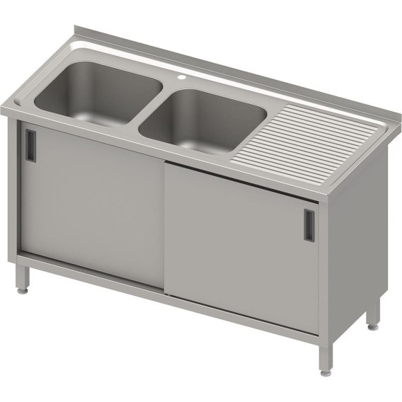 Stół ze zlewem 2-kom. (L) drzwi suwane 1400x700x850 mm blat tłoczony Stalgast 984017140