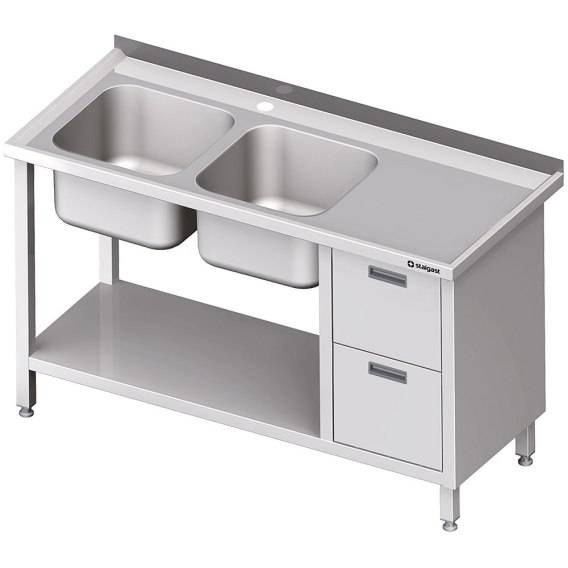 Stół ze zlewem 2-kom. (L) z blokiem dwóch szuflad i półką 1500x700x850 mm Stalgast 981087150