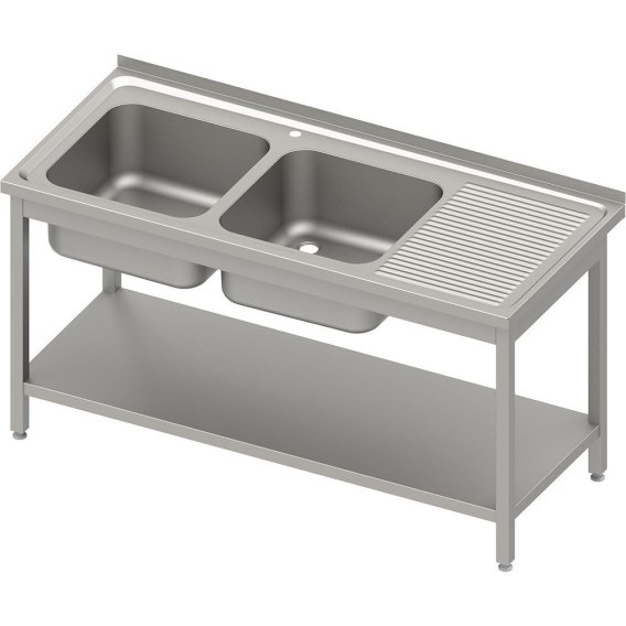 Stół ze zlewem 2-kom. (L) z półką 1400x600x850 mm skręcany blat tłoczony Stalgast 983176140