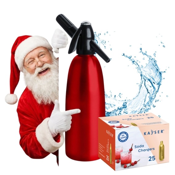 Syfon do wody sodowej gazowanej saturator 1 litr CZERWONY + 25 naboi