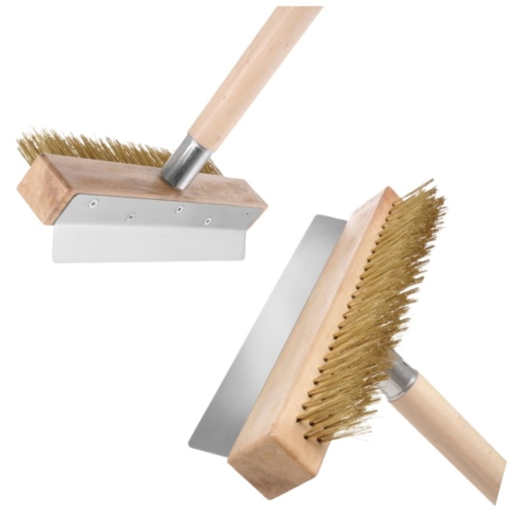 Wysokiej jakości profesjonalna szczotka do czyszczenia pieca do pizzy wyposażona w skrobak. Przeznaczona do użytku w pizzeriach i dużych restauracjach.