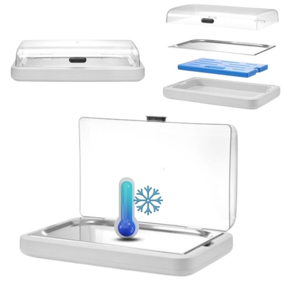 • W zestawie: 1 taca GN 1/1 ze stali nierdzewnej i 1 wkład chłodzący z żelem